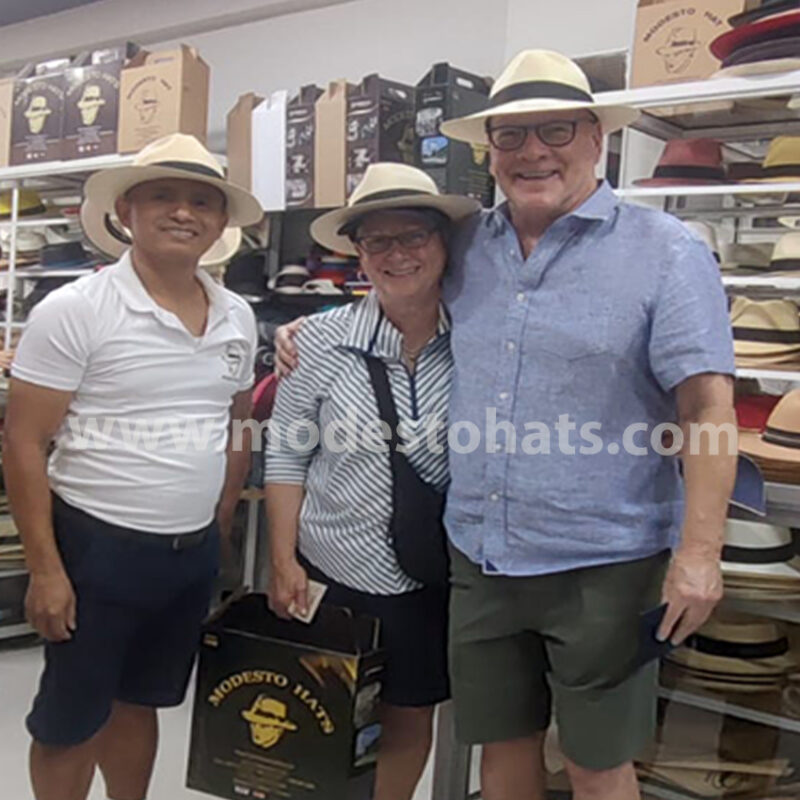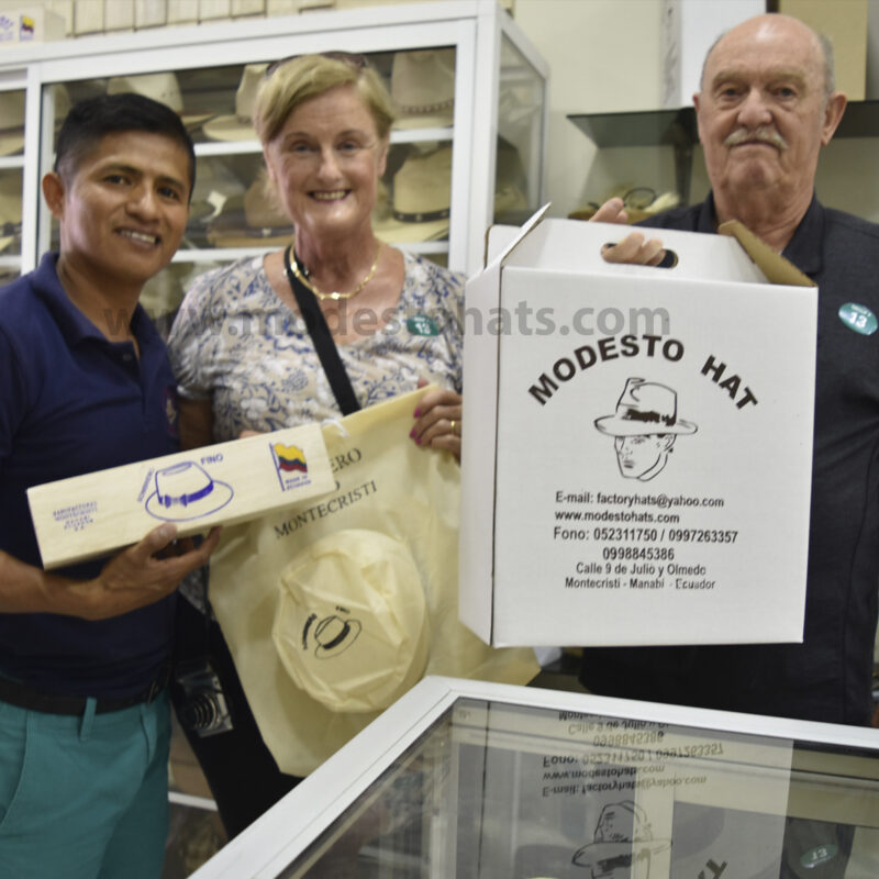 Procedente de la Ciudad de Mexico. Me complace haber adquirido 3 magníficos sombreros hechos por artesanos de Montecristi en mi reciente visita a ese pintoresco pero bonito y apacible lugar, donde fui atendido muy amablemente y de forma personal por el señor Modesto Mero, propietario de Modesto Hats.
